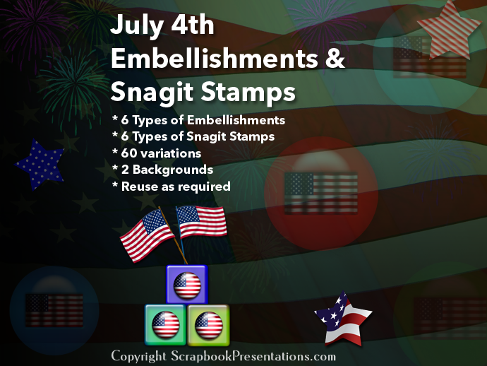 July 4th Scrapbook Embellishments + Snagit Stamps